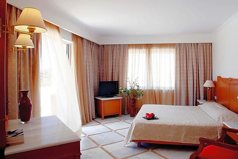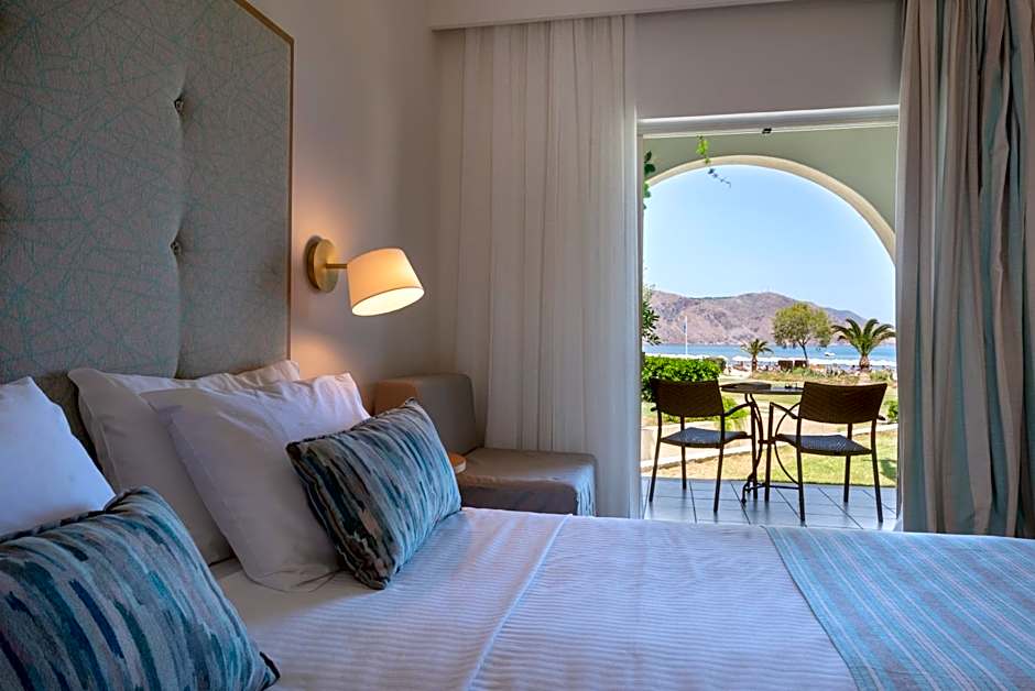 This spacious suite is located either on the ground floor with direct access to pools and gardens, or in the upper level with a balcony overlooking the garden or the sea. It is air-conditioned and consists of 2 bedrooms and a separate bathroom with hairdryer.